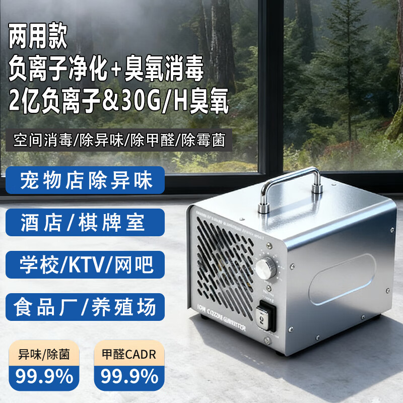拓普万 TOPUVAN2亿负离&30g/h臭氧两用款发生器家用商用消毒机一体机除异味除烟味除甲醛空气消毒净化器臭氧机 银色【2亿负离子+30g/h臭氧】两用款
